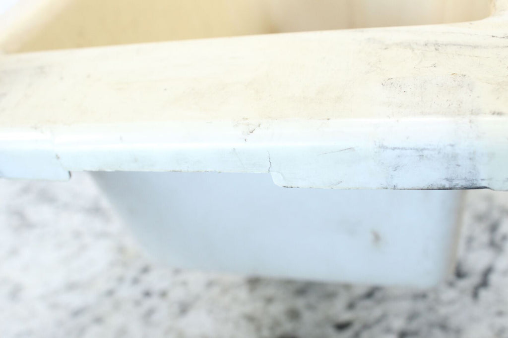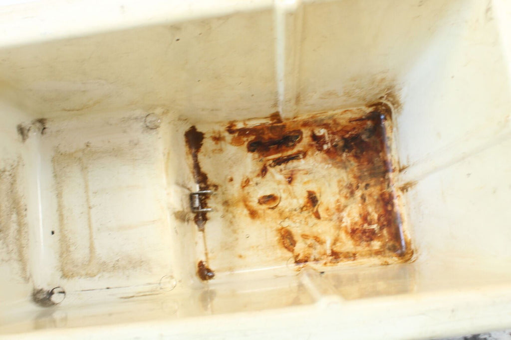 This storage box is in fair condition. This item works well but does have a couple small cracks in the lip edge on the front