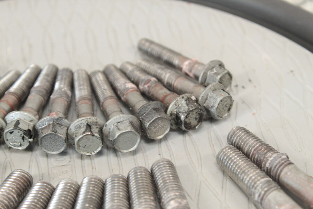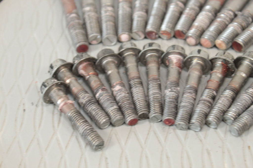 These bolts are in good condition. These items are straight. All threads are in good condition. These items work well. These bolts hold the 2 crankcase halves together.
