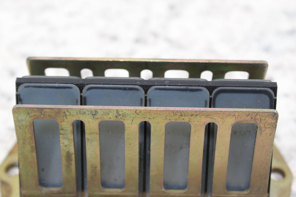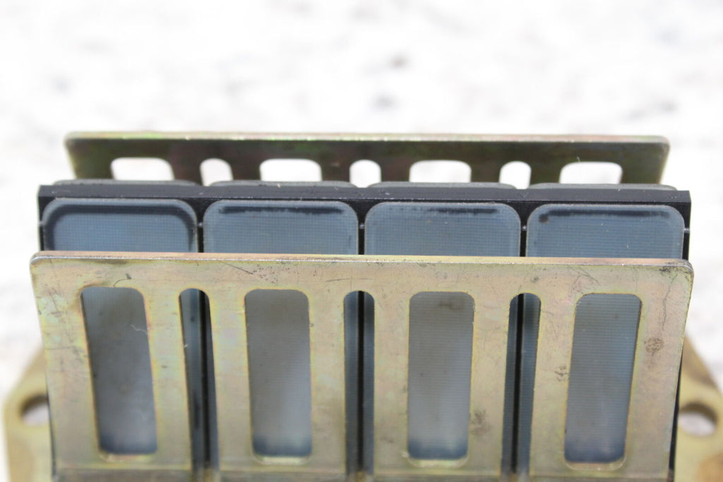 This Reed Valve is in good condition. The mounting holes are intact and do not have any damage. This item does not have any cracks. This item is straight. This item works well.