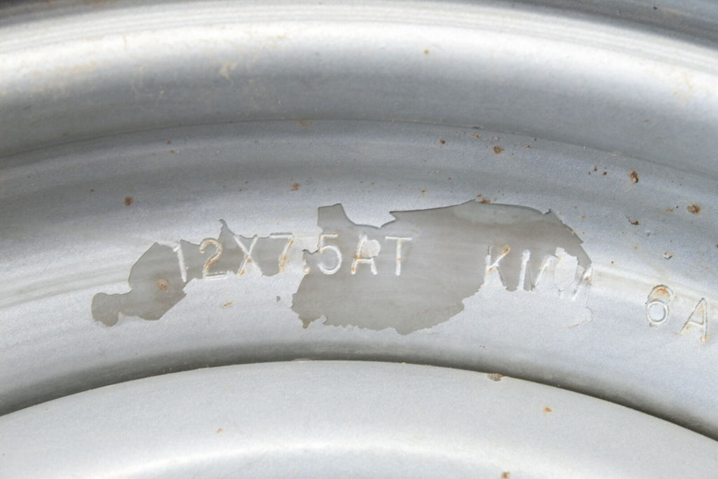 This Rear Wheel is in good condition. This item is straight. This item works well. The paint on this item is peeling. This is a 12" rim. This wheel has a 4/137mm bolt pattern. This wheel is 7.5" wide.