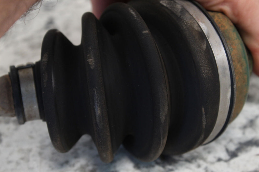 This Front CV Axle is in good condition. This Front CV Axle has good bearings. The CV boots are in good condition with no rips. The splines are in good condition. This item is straight. This item works well. This is a factory oem cv axle.