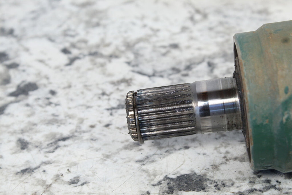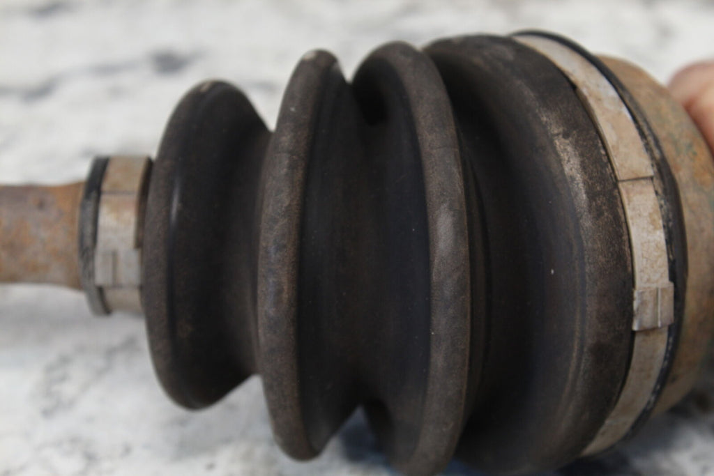 This Front CV Axle is in good condition. This Front CV Axle has good bearings. The CV boots are in good condition with no rips. The splines are in good condition. This item is straight. All threads are in good condition. This item works well.