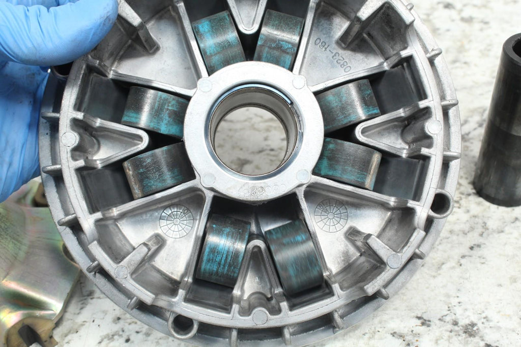 This primary clutch is in good condition. This came off a good running machine. There are no cracks in this item. The sheaves are in good condition and do not have any major wear or scratches. This item is straight. This item works well. The rollers are in good condition.