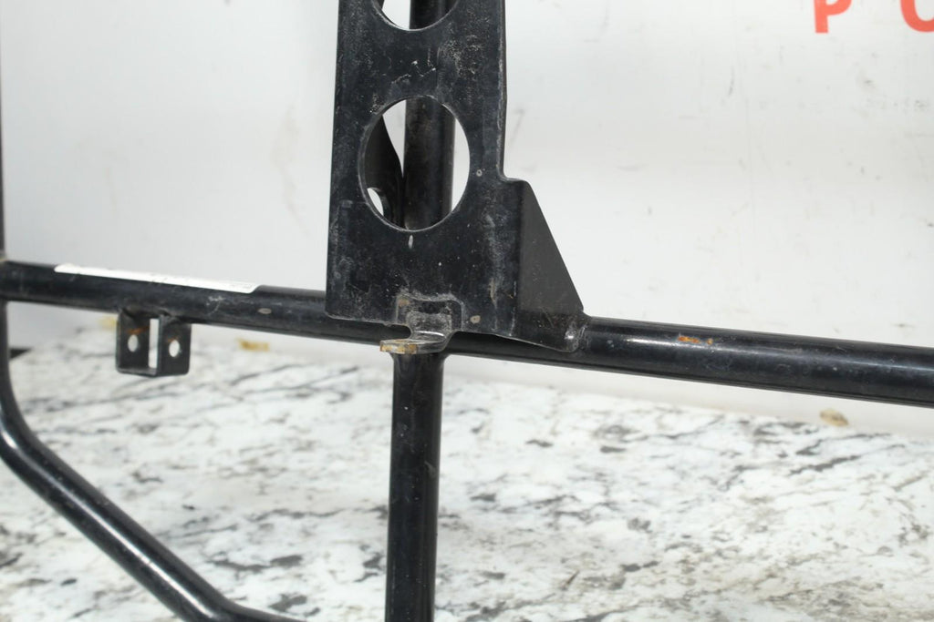 This rear rack is in good condition. This takes the place of the rear seat on the TBX version and mounts into the quick connect mounts. There are no cracks in this item. This item is straight. This item works well.