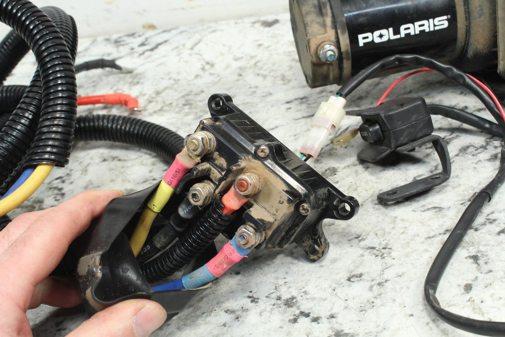 This Winch Assembly is in good condition. There are no cracks in this item. This item works well. No breaks or repairs in the cable wire. Nice shape, original polaris brand winch