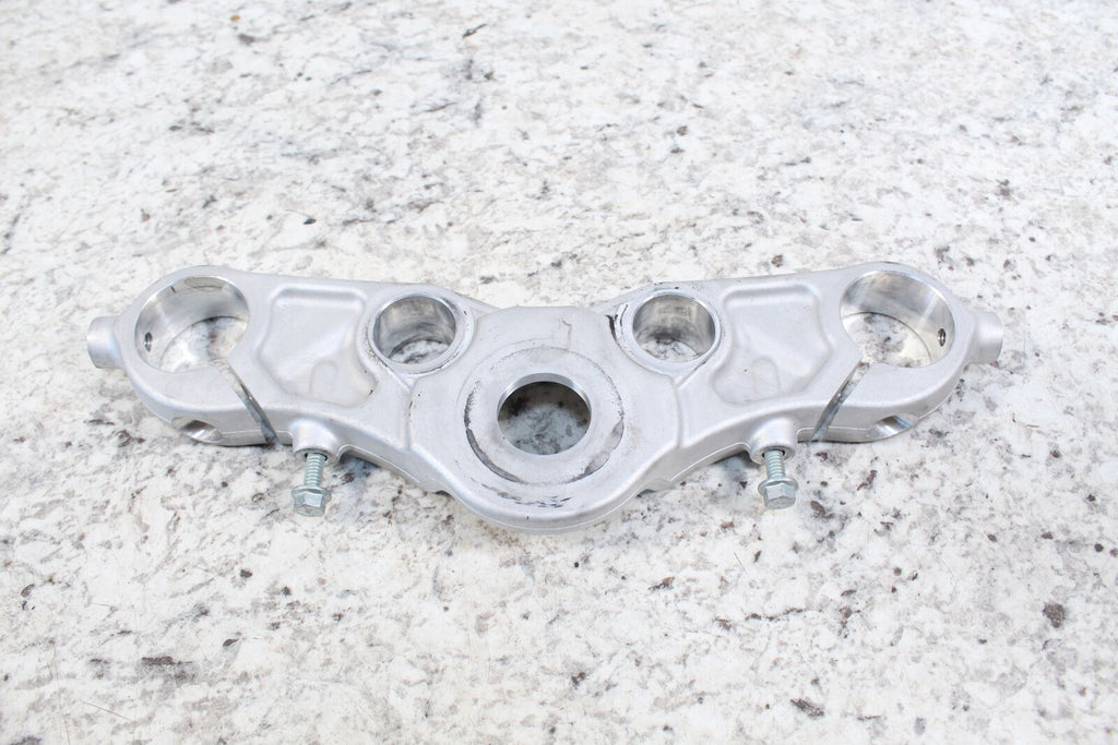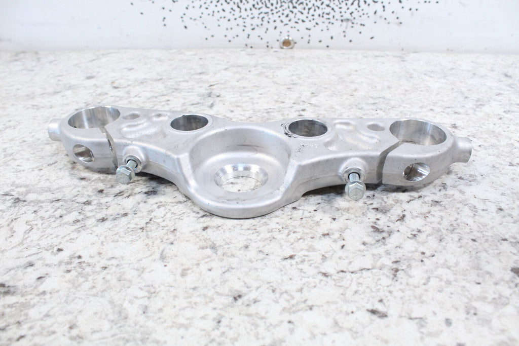 This Upper Triple Tree is in good condition. The mounting holes are intact and do not have any damage. This item is straight. This item works well.