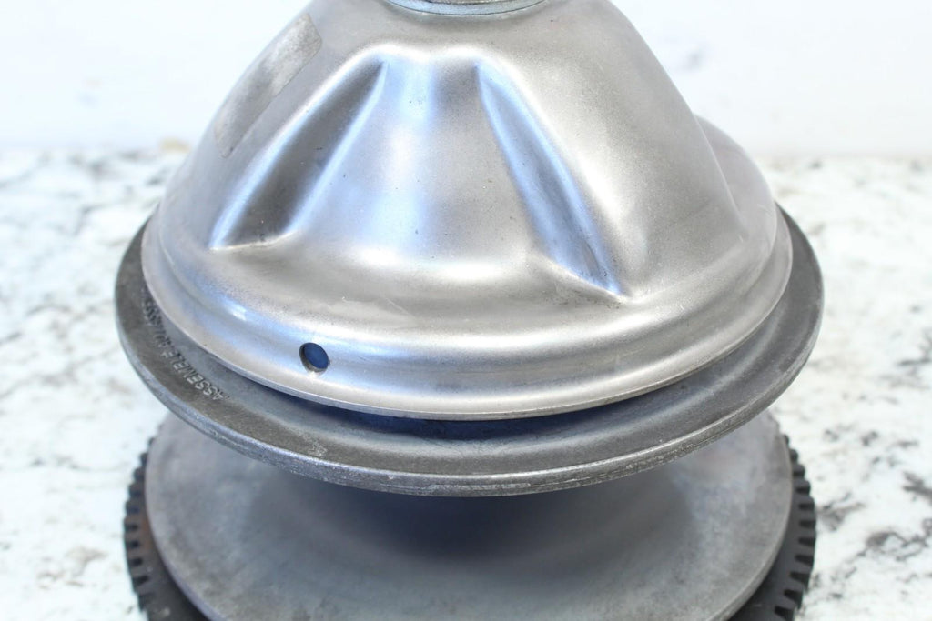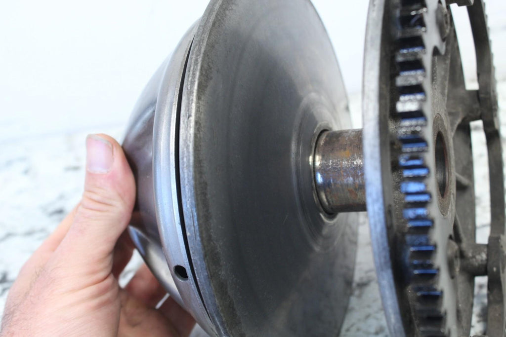 This Primary Drive Clutch is in fairly good condition. The sheaves do have some light wear. This came off a good running machine. There are no cracks in this item. This item is straight. This item works well. The starter gear is in good condition.