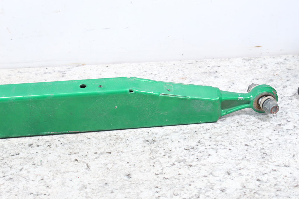 This Swingarm is in good condition. There are no cracks in this item. This item is straight. This item works well. It has been powder coated green but has paint chips