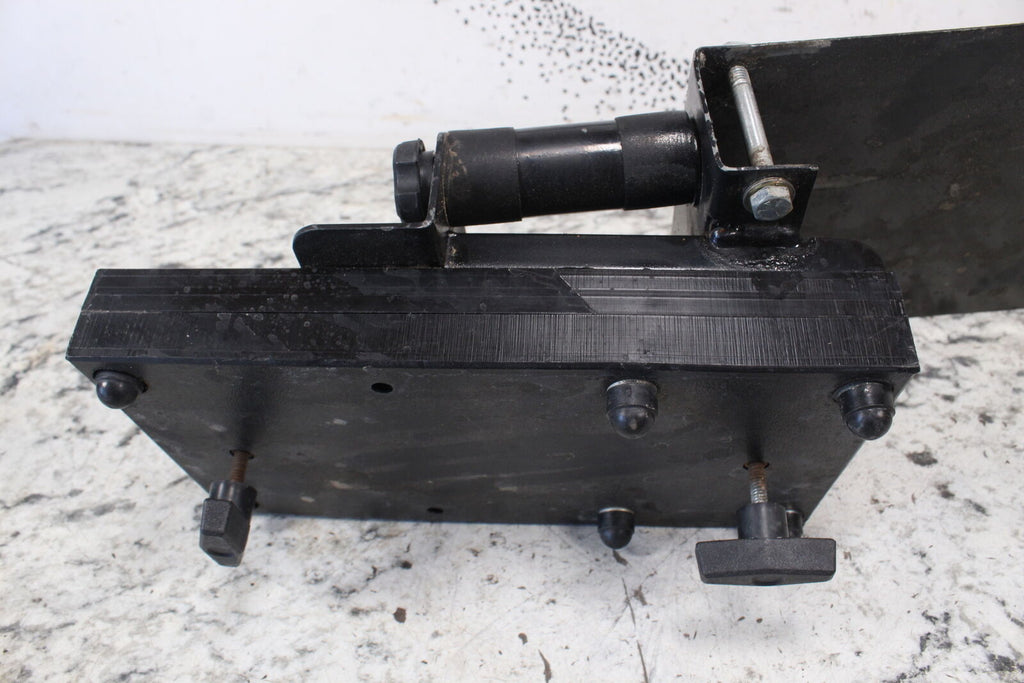 This Bracket is in good condition. This item is straight. This item works well. This carrier is designed to sit over the bed side with the saw to the outside.