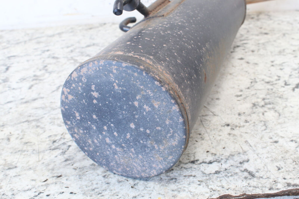 This muffler is in good condition. This came off a good running machine. This item does not have any leaks. This item is straight. This item works well.