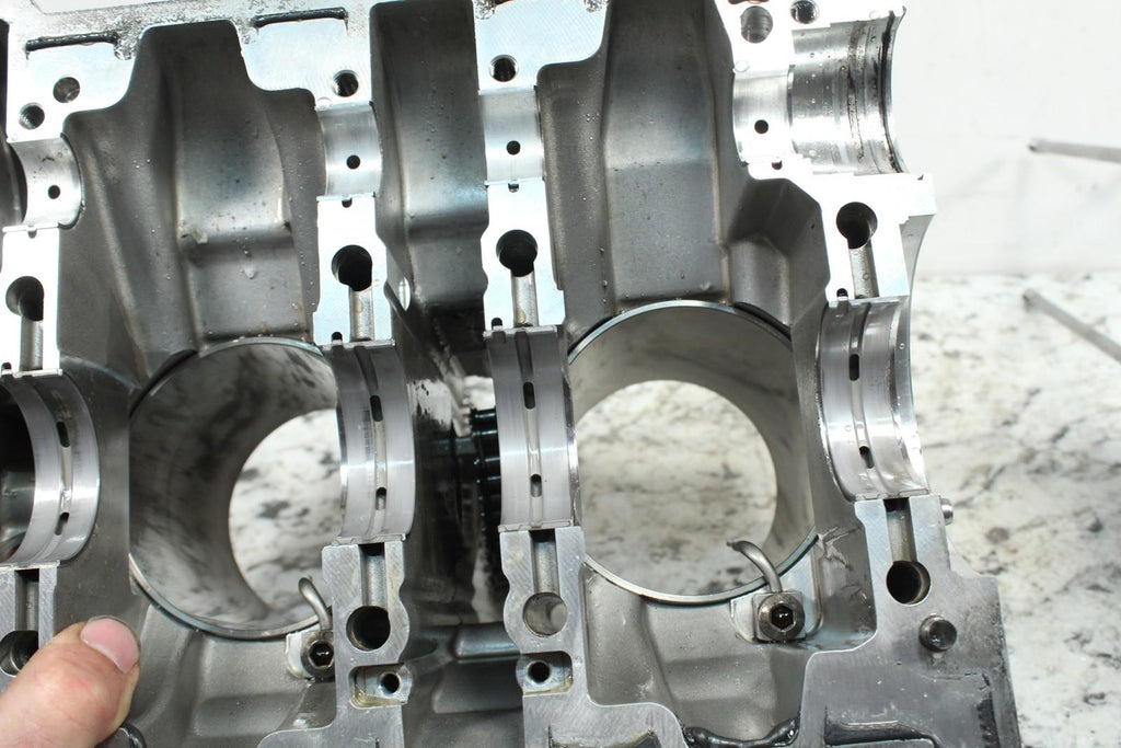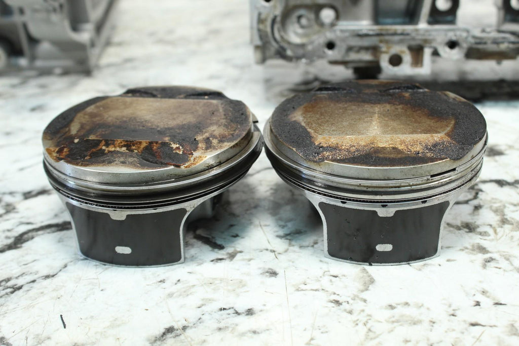 These crankcases are in good condition. The journals are in good condition. These items do not have any leaks. There are no cracks in these items. These items are straight. These items work well. This came off of a good running machine that had 2720 miles on it. Comes with the pistons pictured also.