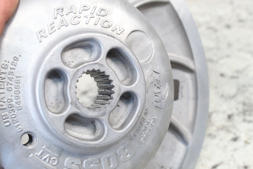 This secondary clutch is in good condition. This came off a good running machine. There are no cracks in this item. The sheaves are in good condition and do not have any major wear or scratches. This item is straight. This item works well.