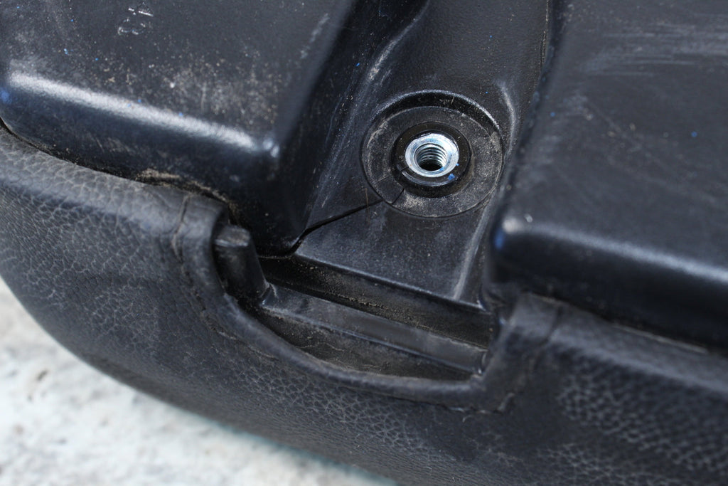 This Seat Back is in good condition. There one crack in the plastic back, but it still works well. It does not have any rips. All threads are in good condition. This item works well.