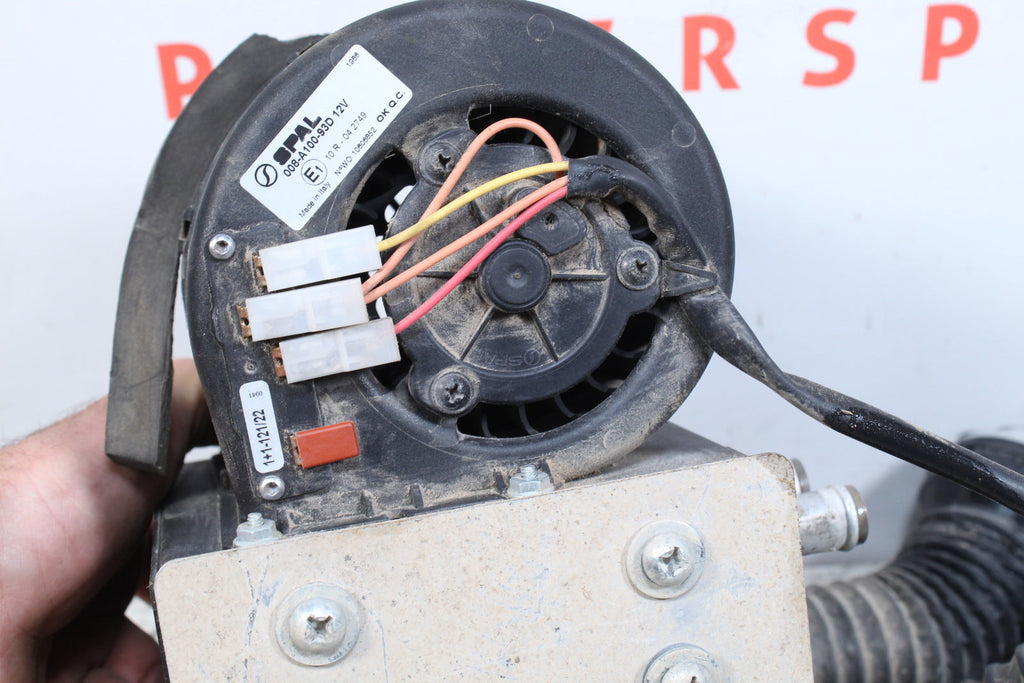 This Heater is in good condition. The wires and connectors are in good condition. This item works well. One of the heater vents has a missing flap.