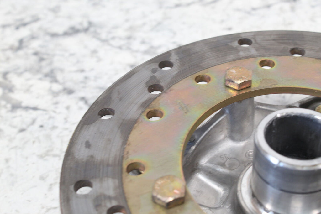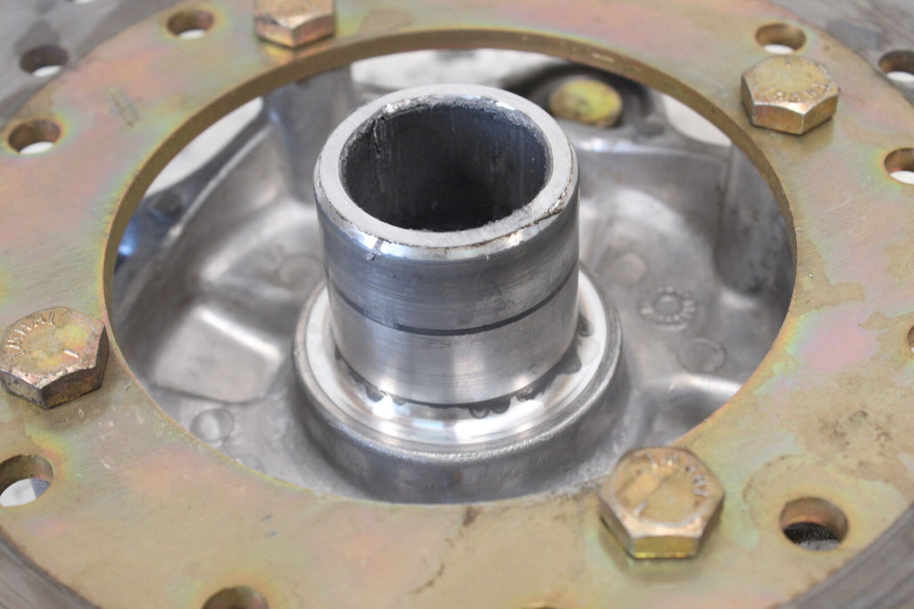 This wheel hub is in good condition. The splines are in good condition. This item is straight. All threads are in good condition. This item works well. This came off of a very good running machine that had 492 miles on it. This item comes with the disc pictured.