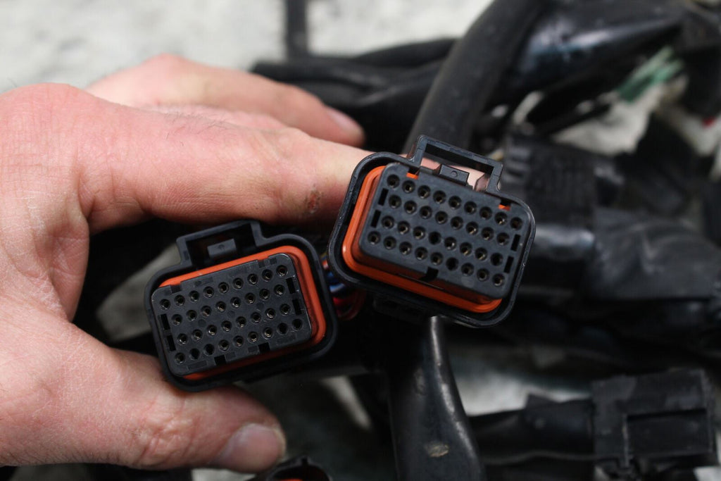 This wire harness is in good condition. This item works well. This came off of a very good running machine that had only 1035 miles on it. It does have one connector that has been changed to different connectors